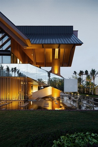 Los edificios tradicionales locales de Hainan son relativamente transparentes y ligeros que crean la interacción con elementos naturales.