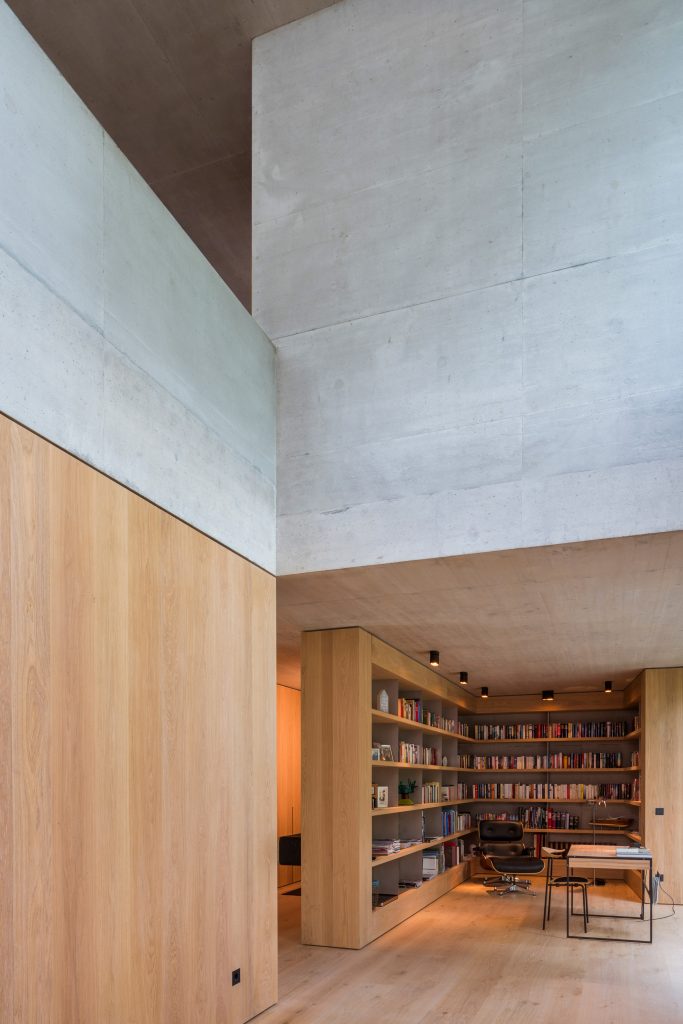 Mientras tanto el interior no deja de sorprendernos, los arquitectos han decidido combinar todos los elementos con un poco de madera, creando así un contraste con las otras partes que están hechas de puro hormigón.