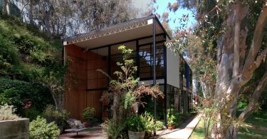 La pared de la habitación solar está hecha de una gran puerta colgante que se puede abrir para convertir la habitación solar en una zona al aire libre e incluso se puede cerrar el espacio del segundo piso que se encuentra por debajo de los tabiques.