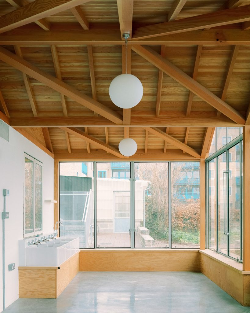 El nuevo desarrollo agrega un invernadero acristalado y un nuevo espacio público ajardinado que crea una nueva “puerta principal” para la granja. “La granja había dado la espalda al río anteriormente, con el Camino del Támesis al frente de arbustos altos y la torre abandonada”, explicó el estudio.