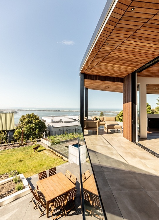 Esta es una casa residencial ubicada en Christchurch, Nueva Zelanda, que cuenta con vistas al paisaje natural de la montaña y a las aguas del estuario.